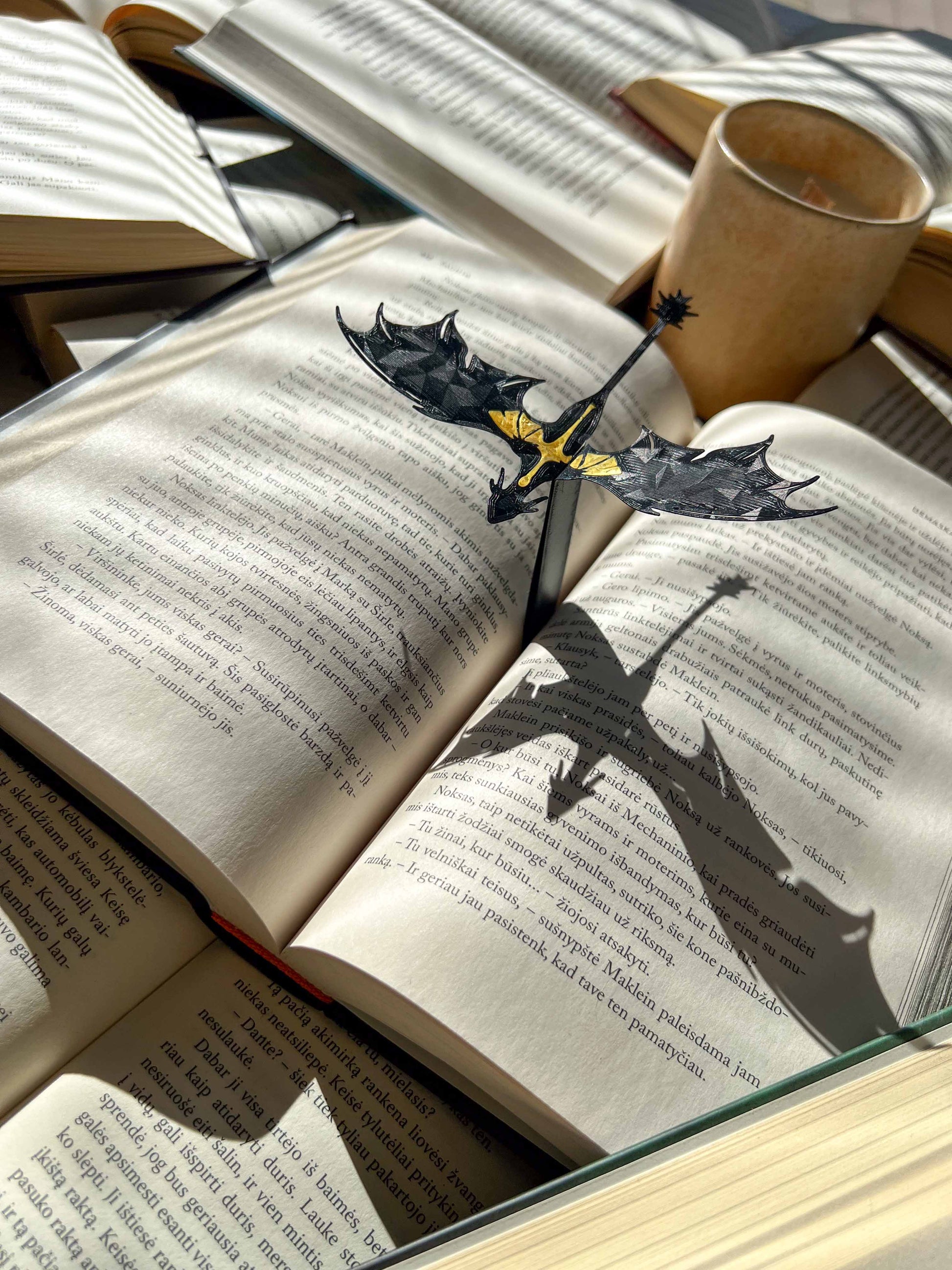 A striking 3D-style bookmark with dramatic wings. Designed for fantasy lovers – unique, lightweight, and durable.