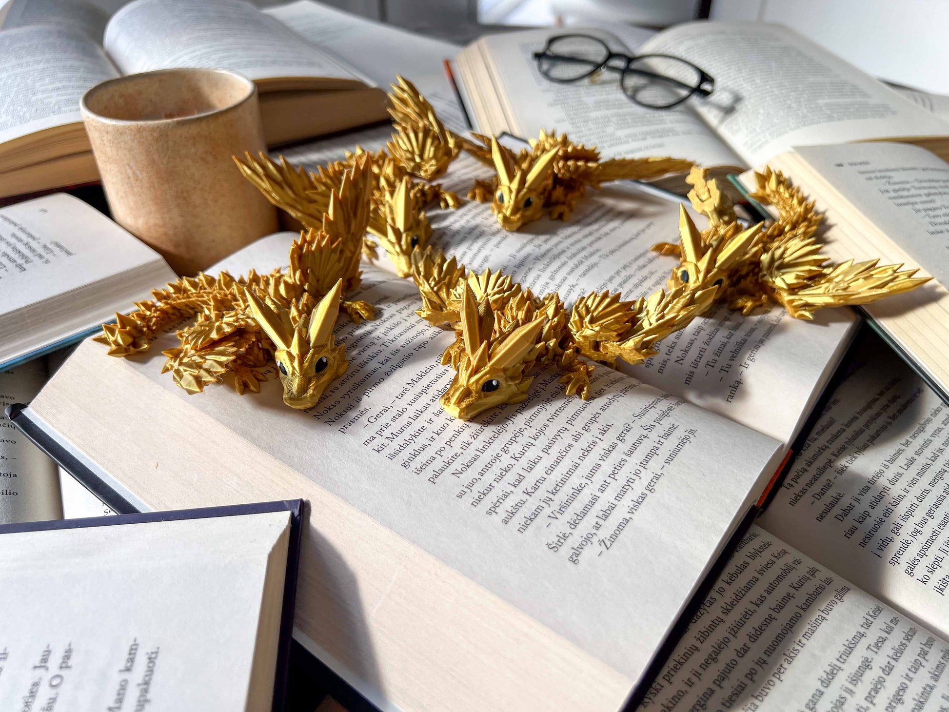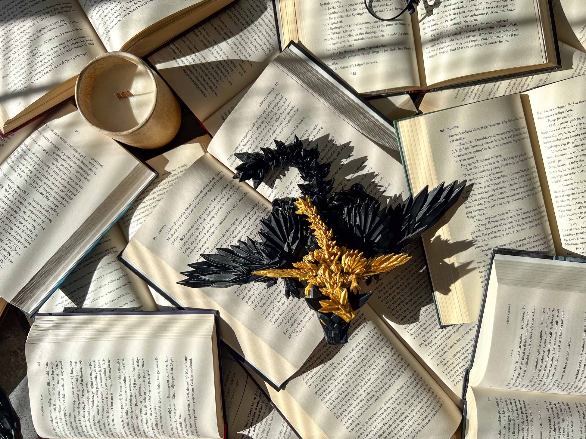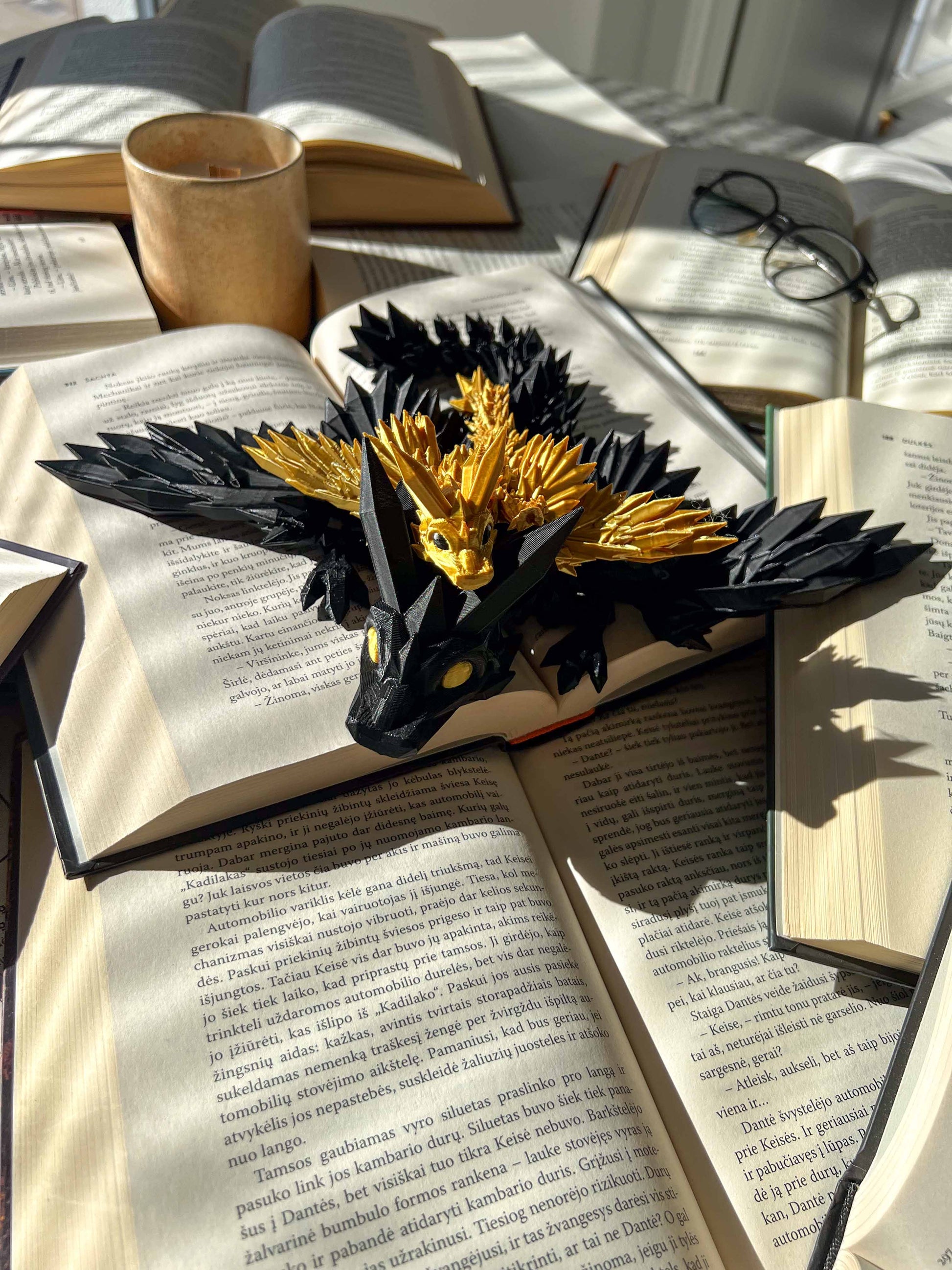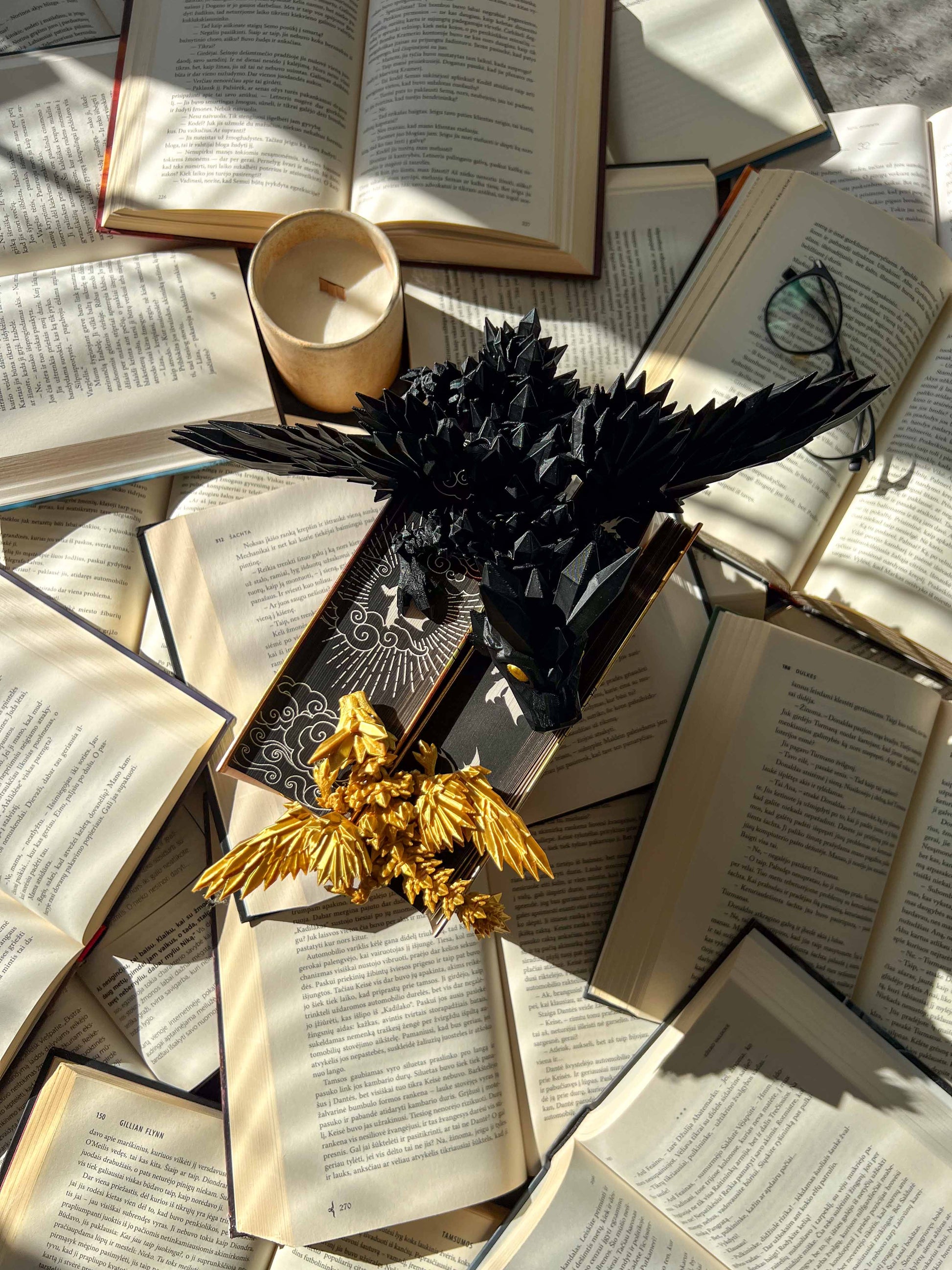 A pair of stunning flexible dragon figures inspired by Fourth Wing. Features a golden dragon and a black dragon – perfect for fantasy lovers and collectors.