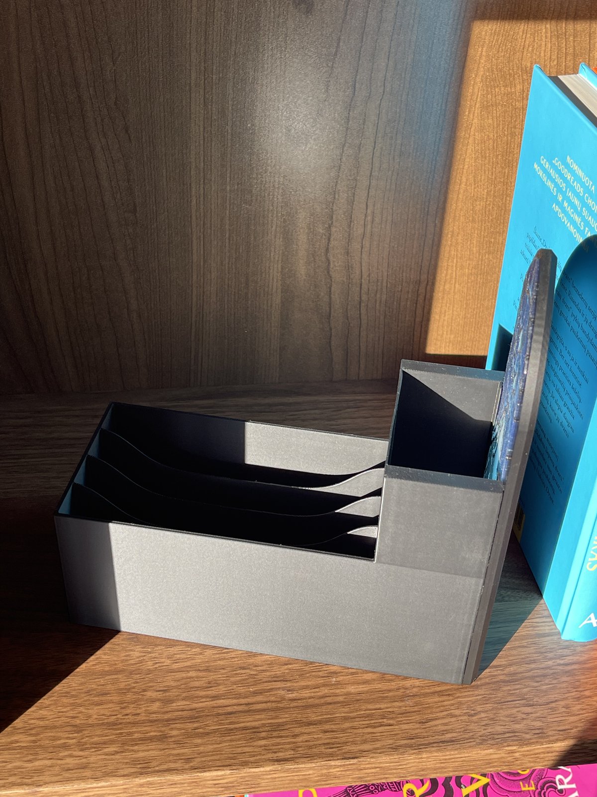 Placed between books, it creates the illusion of a small window into another world, adding character and a finished look to your shelf. Inside, there is space for an LED tealight to create a gentle glow, as well as room to store bookmarks, cards, or other small reading accessories.